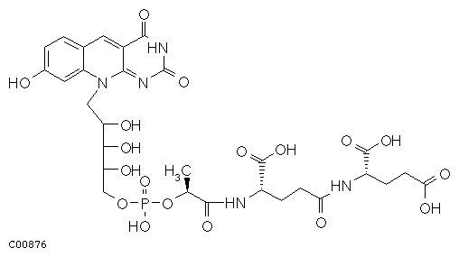 ENTRY C00876 NAME Coenzyme F420 FORMULA C28H34N5O18P PATHWAY PATH: MAP00790 Folate biosynthesis DBLINKS CAS: 64885-97-8 EC: 1.5.99.9 1.12.99.1 ///