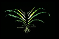 The dissected V3 plant, fig. 8 , is shown with the leaves laid alternately (from side to side) in succession as they naturally appear on the intact corn plant. This same manner of display was used for all subsequent stages presented. Notice from the dissected V3 plant the stem apex (growing point) is still below the soil surface, and that very little stalk (stem) elongation has occurred.