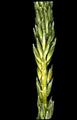 Tassel growth and development are summarized in figs. 32 and 33 from V9 through pollen shed. Figures 34 and 35 show a tassel segment before and during pollen shed.