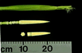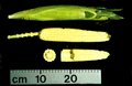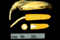 Figure 37 displays (from left to right) the R1 kernel (1) with surrounding materials, (2) without surrounding materials, and (3) sliced through the middle to reveal the inner material. Figure 38 reveals the presence of silk hairs which help catch the pollen.