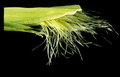 Beginning at about V6, however. increasing stalk and nodal root growth combine to tear the small lowest leaves from the plant. Degeneration and eventual loss of the leaves results. To determine the leaf stage after lower leaf loss, split the lower stalk lengthwise (see fig. 2 ) and inspect for internode elongation. The first node above the first elongated stalk internode generally is the fifth leaf node. This internode usually is about one centimeter (0.4 inch) in length. This fifth leaf node may be used as a replacement reference point for counting to the top leaf collar.